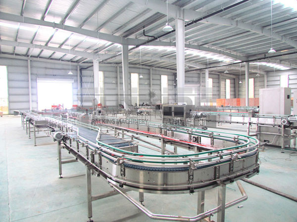 輸送系統(tǒng) 一.概述 我公司的生產(chǎn)線布置充分考慮了客戶投資與生產(chǎn)線使用效率的相互關(guān)系,在引進(jìn)國(guó)外技術(shù)的基礎(chǔ)上,可以很好的達(dá)到生產(chǎn)線運(yùn)送要求。該系統(tǒng)采用國(guó)外***技術(shù),機(jī)械結(jié)構(gòu)為全新設(shè)計(jì),多數(shù)構(gòu)件采用沖壓或折彎成形,具有剛性好、重量輕、互換性好的優(yōu)點(diǎn)。運(yùn)轉(zhuǎn)可靠,維修方便,適用于輸送直徑φ40~φ110 mm罐(瓶)子。無(wú)壓力輸送系統(tǒng),依靠實(shí)時(shí)速度信號(hào)采集和反饋及自動(dòng)差速控制系統(tǒng),能夠?qū)崿F(xiàn)輸送帶上的罐(瓶)在運(yùn)動(dòng)狀態(tài)中由多列平穩(wěn)變更為單列,而不出現(xiàn)相互擠壓現(xiàn)象。 電氣控制系統(tǒng)采用PLC控制整個(gè)實(shí)罐(瓶)輸送緩沖系統(tǒng)的運(yùn)行,自動(dòng)實(shí)現(xiàn)運(yùn)行速度加減速、自動(dòng)緩沖的功能。 二.主要結(jié)構(gòu)及特點(diǎn)