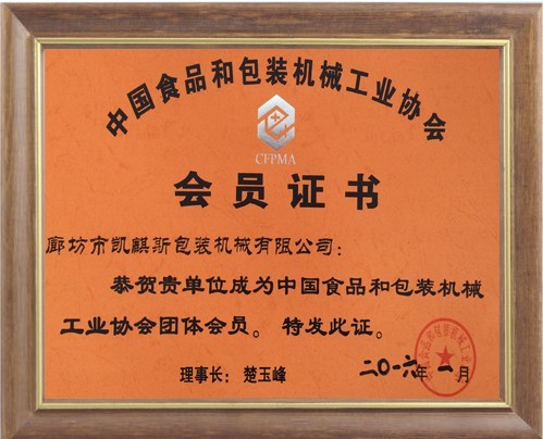 - 我公司正式加入中國食品和包裝機(jī)械工業(yè)協(xié)會(huì)